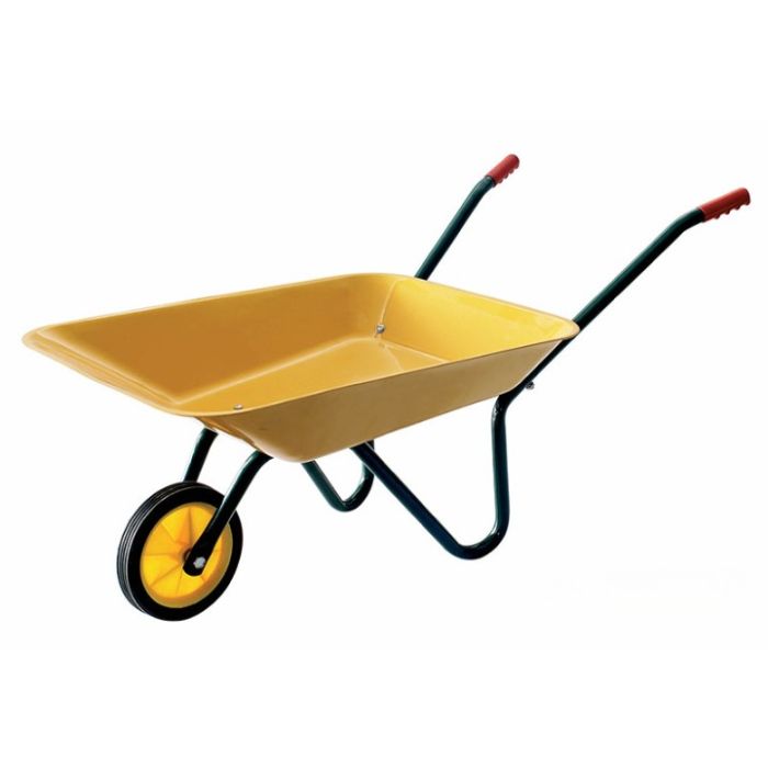 Built with a painted plastic tray, solid rubber wheel, and a rugged tubular metal frame, it's lightweight enough for younger children to push, steer and tip with confidence, but strong enough to handle heavy-duty outdoor fun.