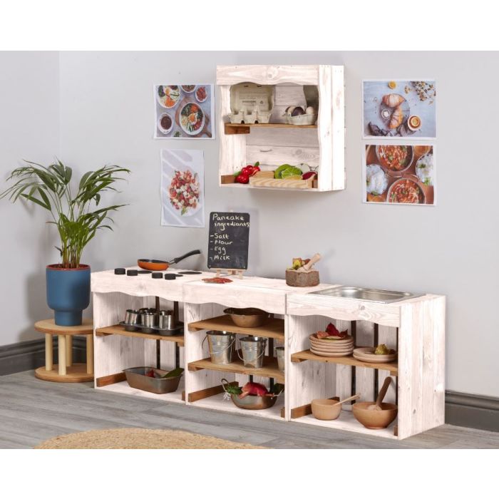 Meticulously crafted with attention to detail and designed to ignite creativity, this play set brings the cosy warmth of a countryside kitchen to any educational environment or cosy home corner.