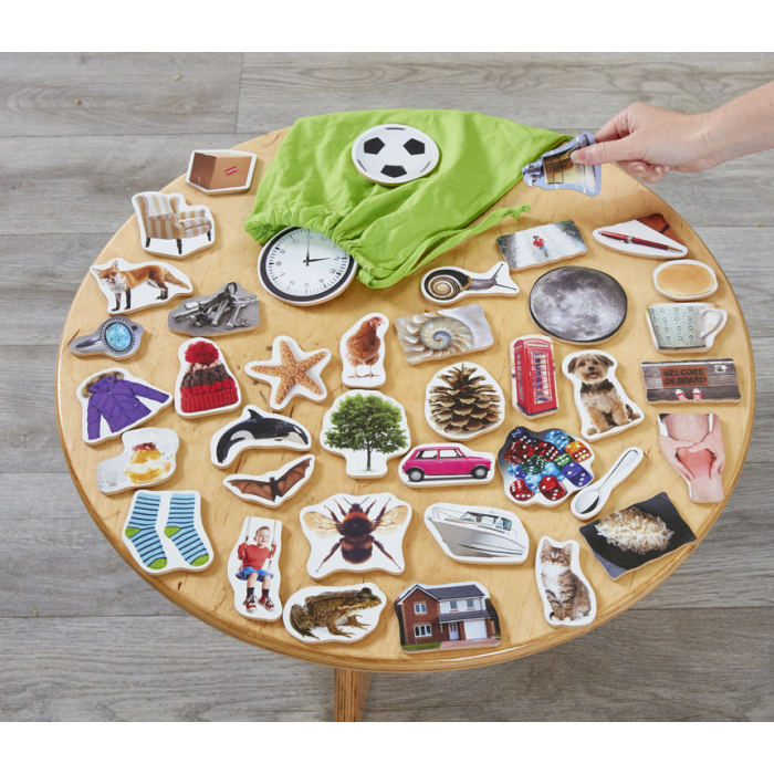 Use to listen for initial sounds in phonics games, match rhyming items or use to create simple stories.