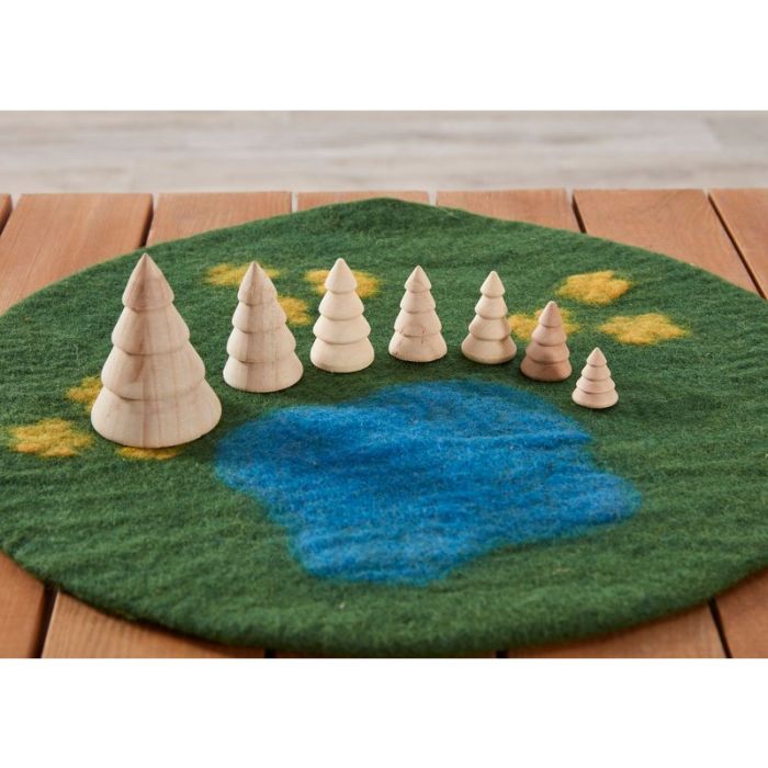 Whether it's a shady picnic spot for small world people, a jungle for adventurous animals, or simply somewhere for the tractor to park under, this set of seven wooden trees has you covered.
