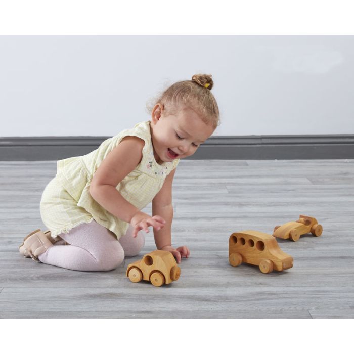 Designed for learners who love a bit of vroom-vroom, this trio of sturdy wooden vehicles is ideal for all sorts of creative chaos.